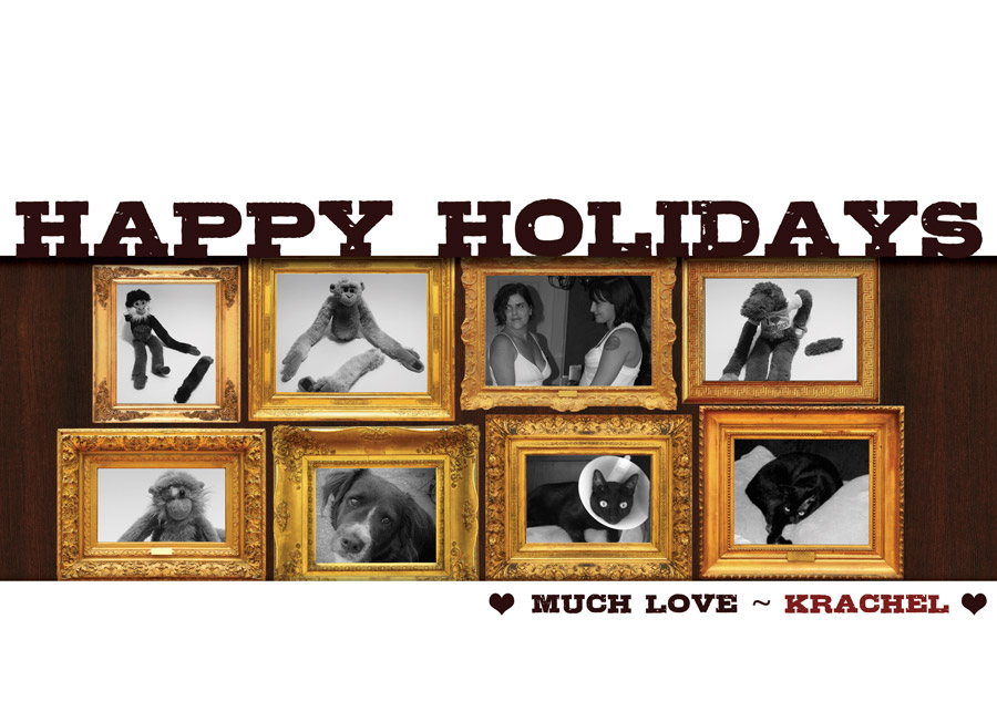 This certain family needed a holiday card to send to friends, and opted to go with an "amputated limbs" theme, in honor of the various stuffed animal limbs that a pet border collie was fond of leaving around.
