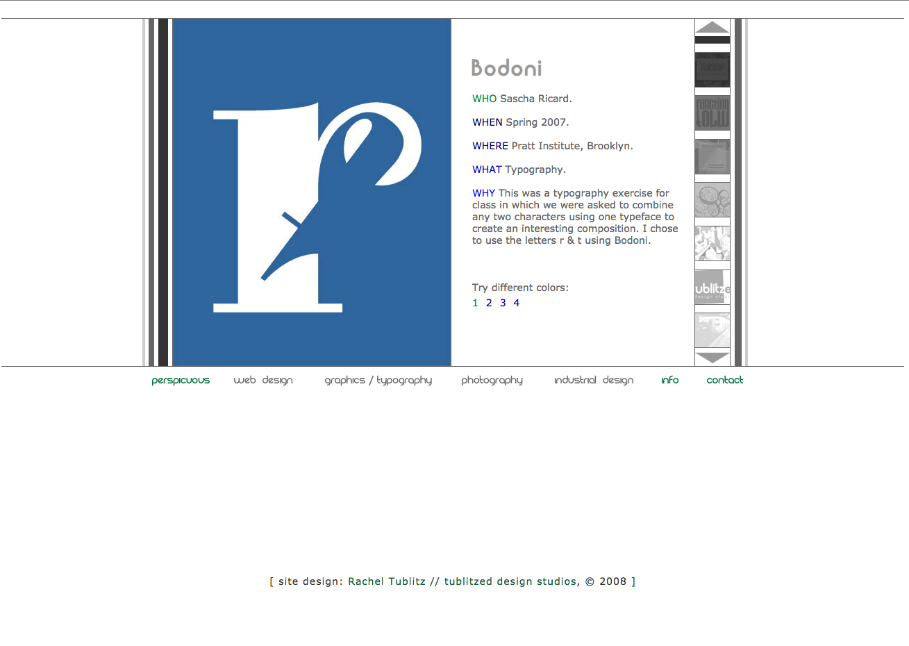 The older portfolio website for Rachel Tublitz, created before tublitzed.com came into existence.