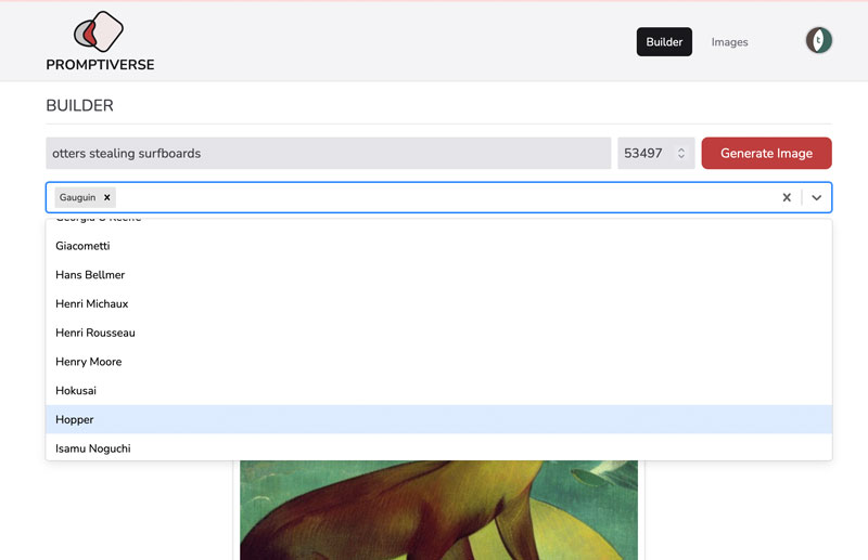 Prompt builder for Stable Diffusion with a focus on artist names and artistic styles as input.