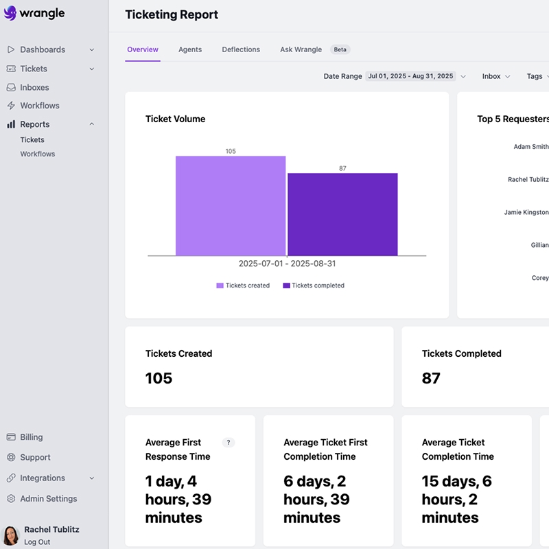 Work gets lost easily within Slack. Rachel and the team at Wrangle built an AI powered ticketing and workflow engine in order to help teams stay on top of their work.